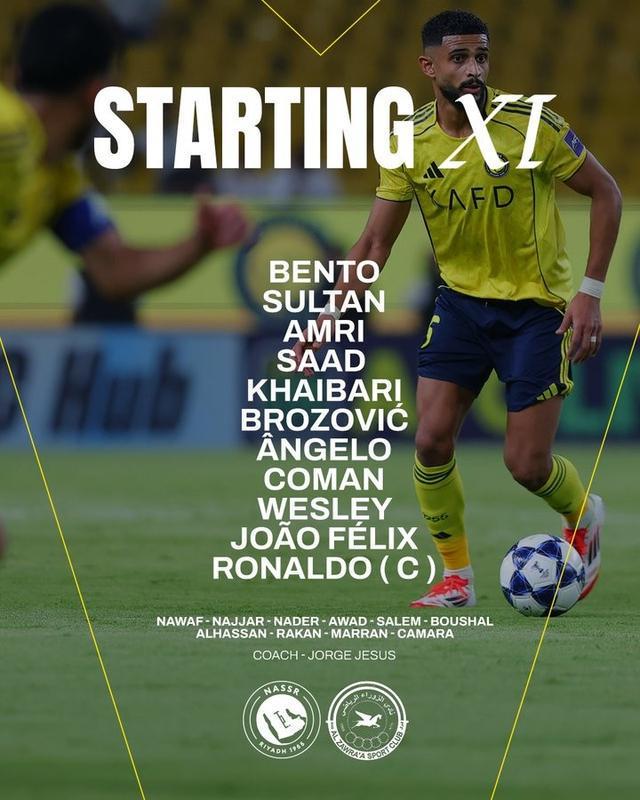 北京时间12月25日0:00,亚冠二级小组赛第6轮,利雅得胜利主场对阵祖拉。赛前首发公布,C罗先发迎个人亚冠二级赛事首秀。